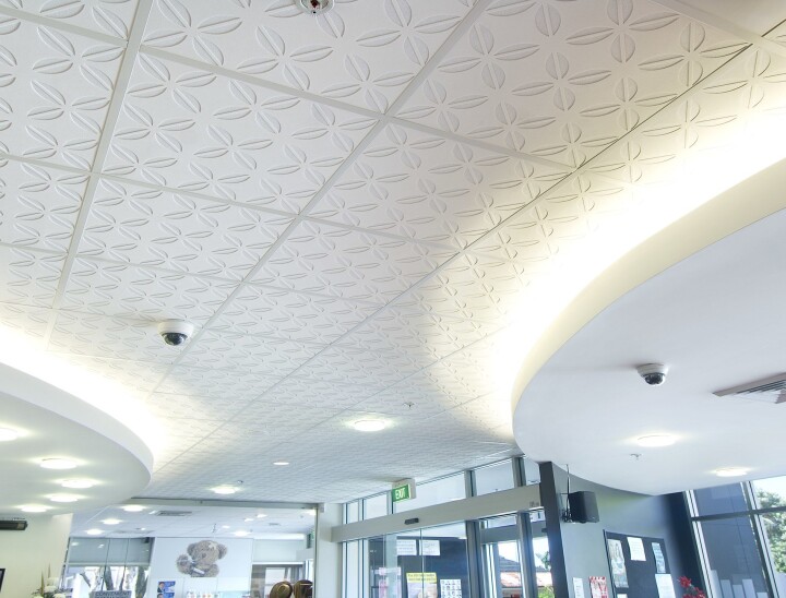 Sonaris™ is manufactured in New Zealand, is lightweight, non combustible, low in embodied energy, low VOC, easily customised, economical and made in a range of standard round/slot perforations and custom perforation patterns available to order.